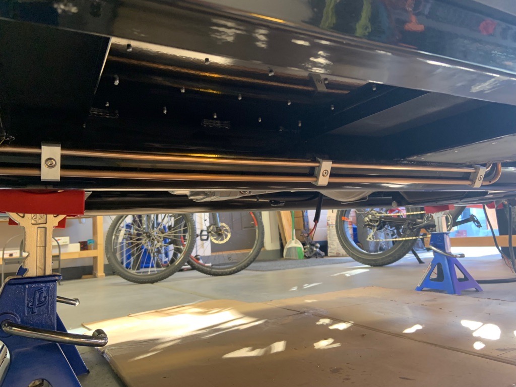 Downstream of the fuel pump is a Aeromotive canister fuel filter with a 10 micro filter. Fuel lines that run along the chassis are 3/8” NiCopp tubing held in place with Loadstone Billetworks clamps: