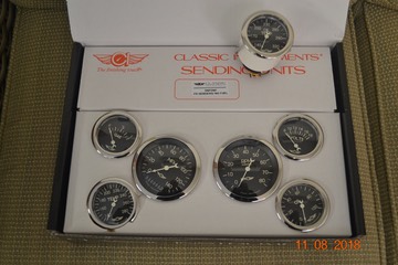 I decided to make a ‘competition’-style instrument panel and purchased some Classic Instruments gauges. I received Autometer Ultra Lites with my purchase from F5 but decided that I don’t like the look for a 60’s car. The Classic Instruments are ‘classic’ for sure. One of the characteristics of the original Cobra speedometer was a reverse reading gauge. Smith’s gauges are like this but I decided to go with a typical clockwise winding of the speedo. It’s interesting that the aviation industry has studied human / control interactions and has concluded that gauges that have counter-indicators are not good. For example, less to the left, more to the right, not a mixture of indicators. All the gauges below wind clockwise for more.